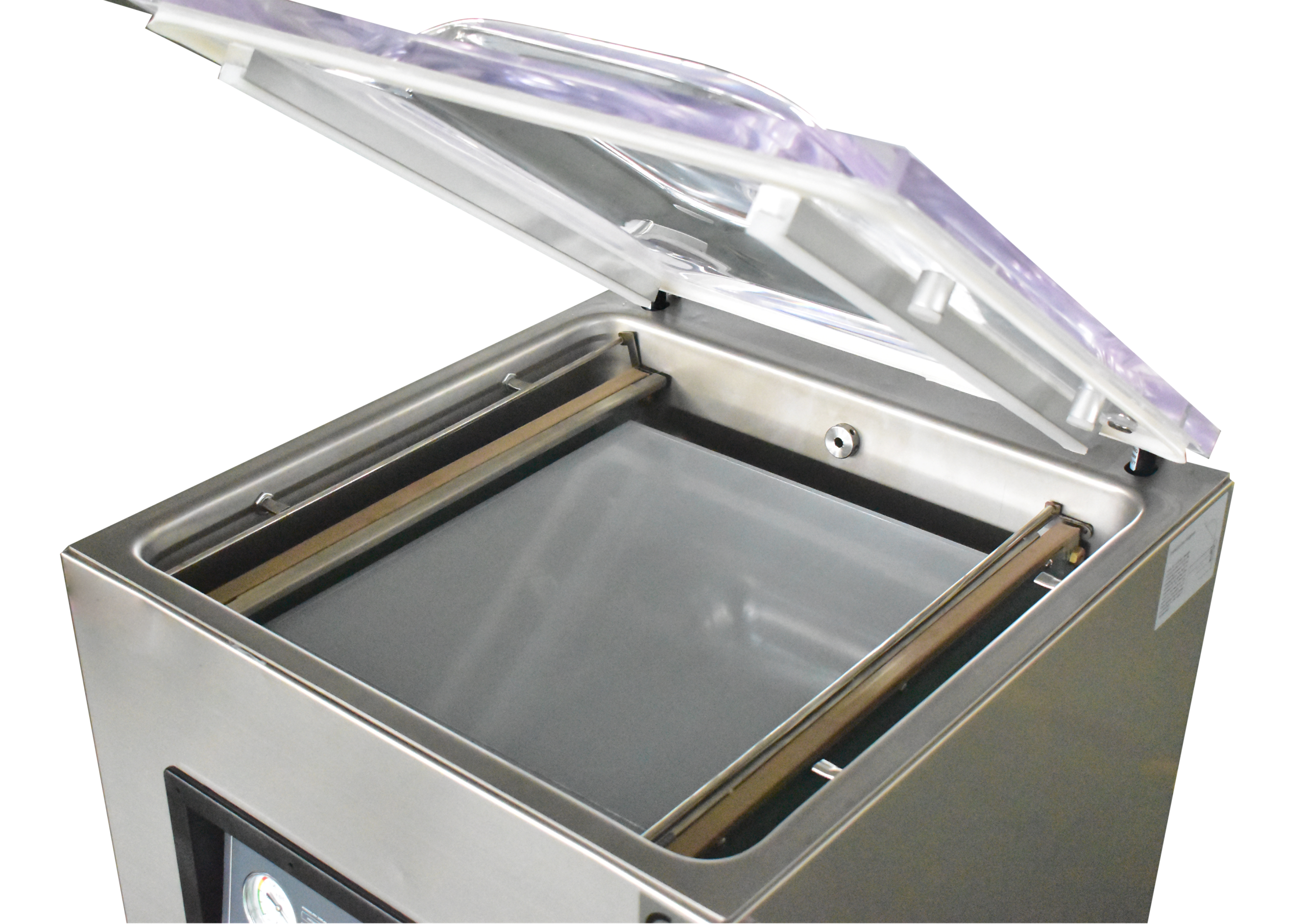 The sealer’s vacuum pump delivers a capacity of 20 m³/h, enabling rapid air evacuation and achieving deep vacuum levels efficiently. Dual sealing bars provide enhanced sealing pressure and heat distribution for strong, leak-proof seals. The programmable control panel enables tailoring of vacuum times and sealing cycles to meet specific product requirements, improving overall packaging quality. Supported gas flush capabilities further enhance performance for oxygen-sensitive products, improving shelf life and product appearance.