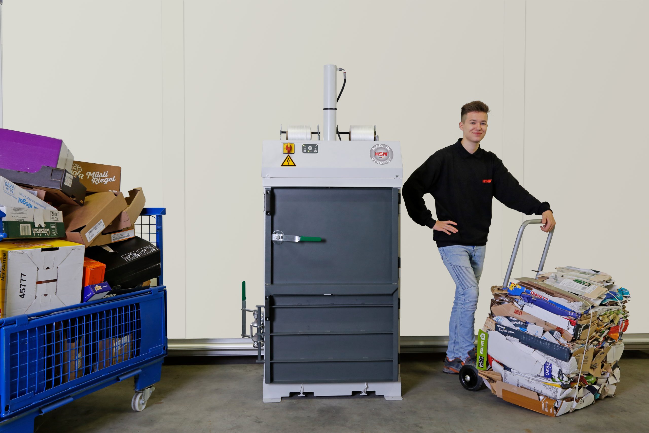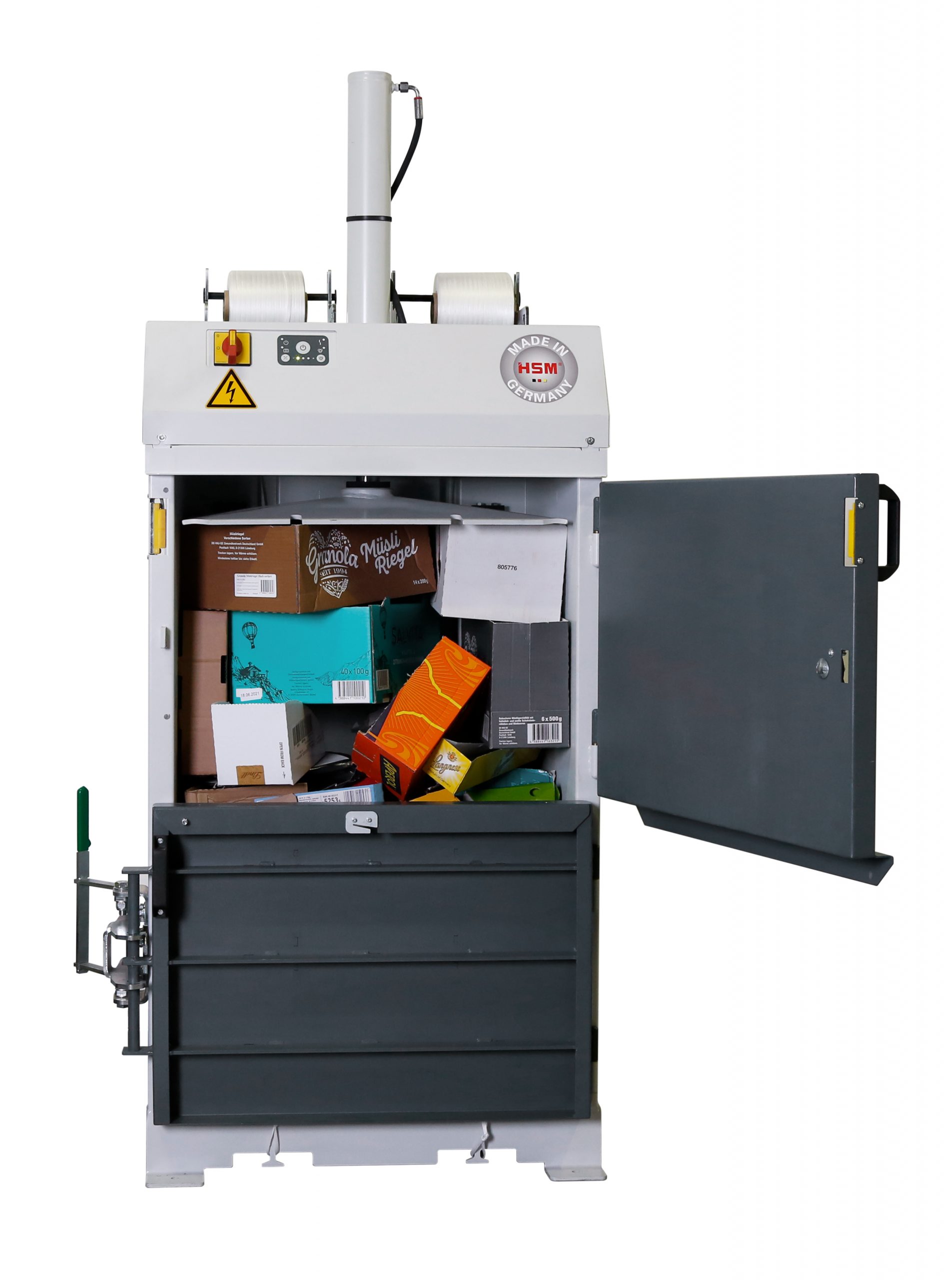 Nutzen Sie die vertikale Ballenpresse “V-Press 503” von HSM, um Folien, Mischpapier und Kartonagen auf ein Minimum zu verdichten. Dieses Modell eignet sich für geringe Materialmengen in der Druck- und Verpackungsindustrie, in Logistik und Spedition, im Handel sowie in Industrie und Produktion. Mit dieser Abfallpresse kann das Abfallvolumen erheblich reduziert werden, sodass Sie nicht nur Zeit bei der Entsorgung, sondern auch einige Kosten sparen.