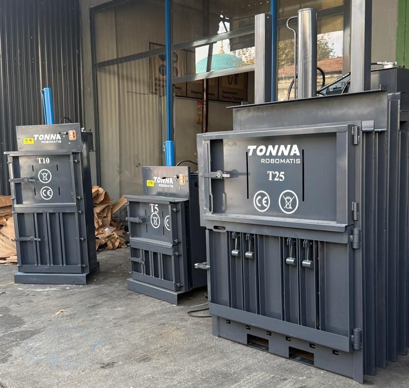 Karton Presse TONNA10 ist weit verbreitet für das Pressen von Kartons, Baumwollgarn, Kunststoff, Holz usw. Die vertikale hydraulische Presse ist die effizienteste Art und Weise, um die Kosten von Abfallmaterial für die Beseitigung oder sicheren Lagerraum zu reduzieren. Kartonpresse ist als eine vertikale Struktur konzipiert, die Presse wird durch hydraulische Übertragung durchgeführt. Die Karton Presse TONNA10 erzeugt einen Druck von 10 Tonnen. Der Bediener steuert die Kartonagenpresse mit einer elektrischen Steuerung. Wenn der Pressvorgang abgeschlossen ist, muss der Bediener die Ausgabe manuell mit einem Draht oder einem Kunststoffband binden. Die Größe des Bügels beträgt 700 mm x 500 x 1000 mm (B x T x H) und kann bis zu 80 kg wiegen, je nachdem, welche Materialien in die Kartonpresse eingelegt werden. Die Kartonpresse kann zwischen 6-8 Pakete pro Stunde produzieren. Die Maße der Kartonpresse TONNA10 betragen 1050 x 730 x 2300 mm (B x T x H) und die Presse wiegt 270 kg. Wir bieten schnelle Lieferung und Garantie in alle EU- Länder.