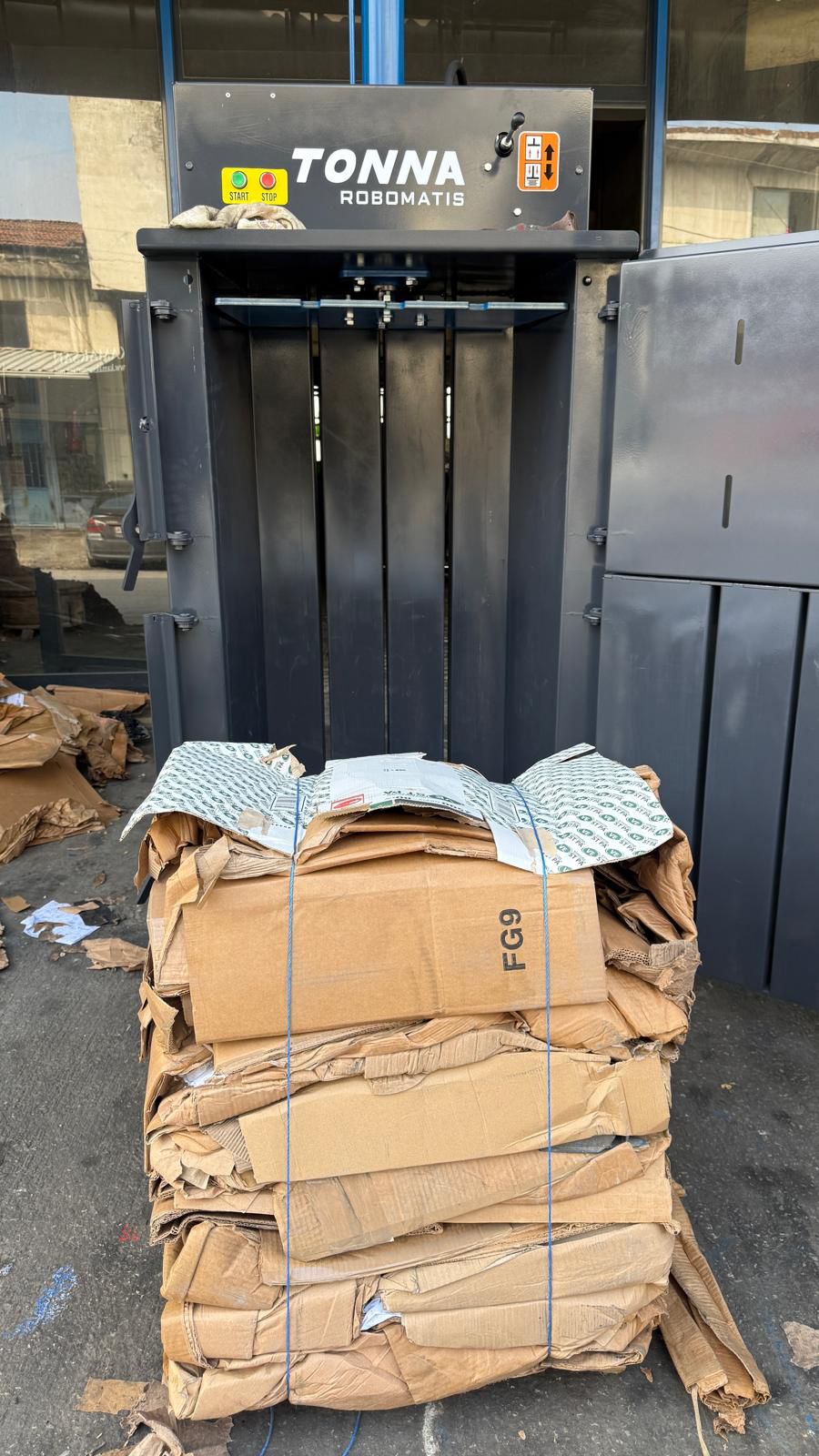 Die Installation der Kartonpresse TONNA10 ist ziemlich einfach. Im Grunde müssen Sie nur die Druckluft anschließen und den Strom einstecken, und schon können Sie loslegen. Der erste Schritt nach der Installation der Kartonpresse besteht darin, den Presshammer nach oben zu ziehen, sodass der Raum, in den Sie das Abfallmaterial legen werden, leer ist. Dies geschieht einfach durch Betätigung des Griffs. Dann müssen Sie die Abfälle in die Kartonballenpresse legen. Sie können die Kartonpresse mit Kunststoff, Holz, Pappe, Papier, Glas und auch anderen Abfällen füllen. Füllen Sie sie bis zum Rand der Kartonpresse. Drücken Sie dann den Griff und der Hydraulikhammer beginnt sich nach unten zu bewegen und das Abfallmaterial mit Druck zu quetschen. Der Pressvorgang kann ein paar Minuten dauern. Wenn der Pressvorgang beendet ist, bewegen Sie den Griff und heben Sie den Hammer an. Durch den Druck wird das Material in den Ballen gepresst, der dann manuell mit einem Draht oder Band gebunden werden muss. Wenn der Ballen gebunden ist, öffnen Sie die Tür der Kartonpresse und entfernen den Ballen mit den Händen oder einem Gabelstapler.